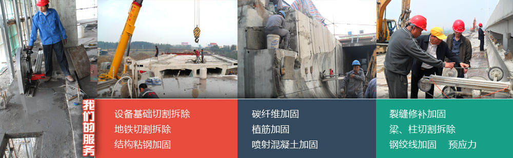 擁有自行研發(fā)生產(chǎn)的專業(yè)性混凝土切割機(jī)設(shè)備:液壓繩鋸機(jī)8臺、液壓墻鋸機(jī)4臺、液壓鉆孔機(jī)10臺,電動(dòng)鉆孔機(jī)20臺